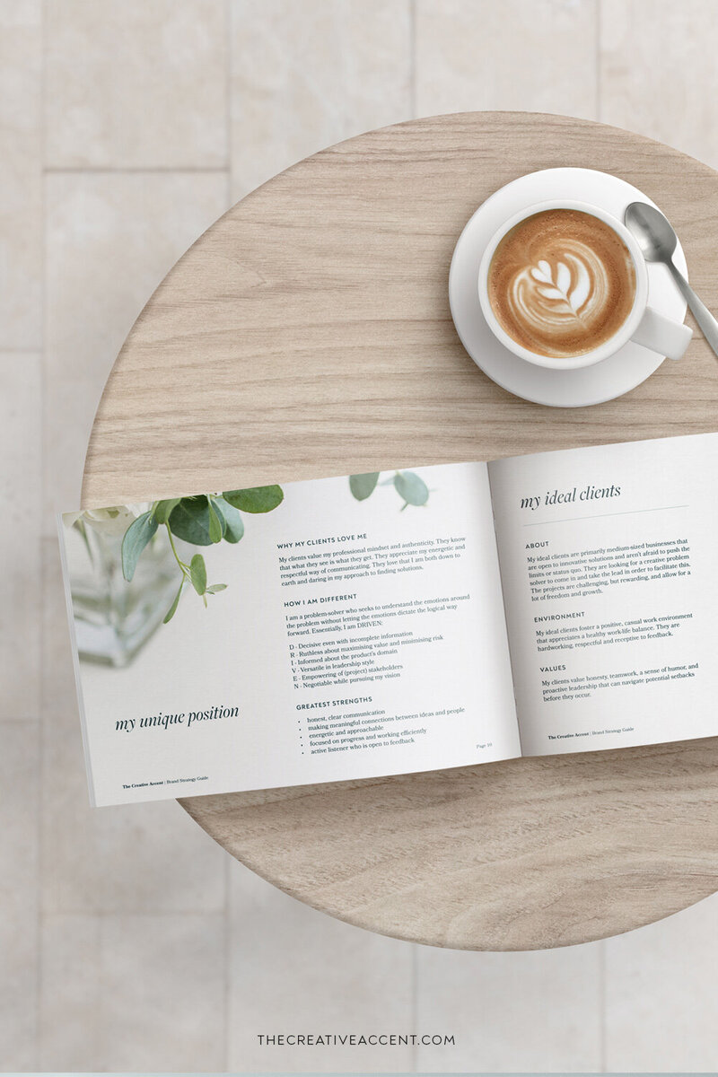 This is a 16+ page PDF that will break down all the insights gained from the strategy workshop and the additional research on our end. This Guidebook will give you clarity about what's essential to your brand, the needs of your audience, your unique position in the industry, and a communication framework that resonates with your ideal clients. This includes defining your: